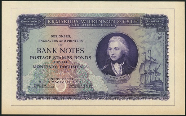 La imprenta Bradbury, Wilkinson & Company, se fundó en 1848 bajo el mandato de H. Wilmot Wilkinson, con la ayuda de su hijo, ambos especialistas en el arte de imprimir con planchas de cobre, en el corazón de la ciudad de Londres. En 1862, el hijo y su nuevo socio, William Badbury, trasladaron la compañía a New Malden, en Surrey, donde permaneció hasta 1986, año en que fue adquirida por su competidora De la Rue.